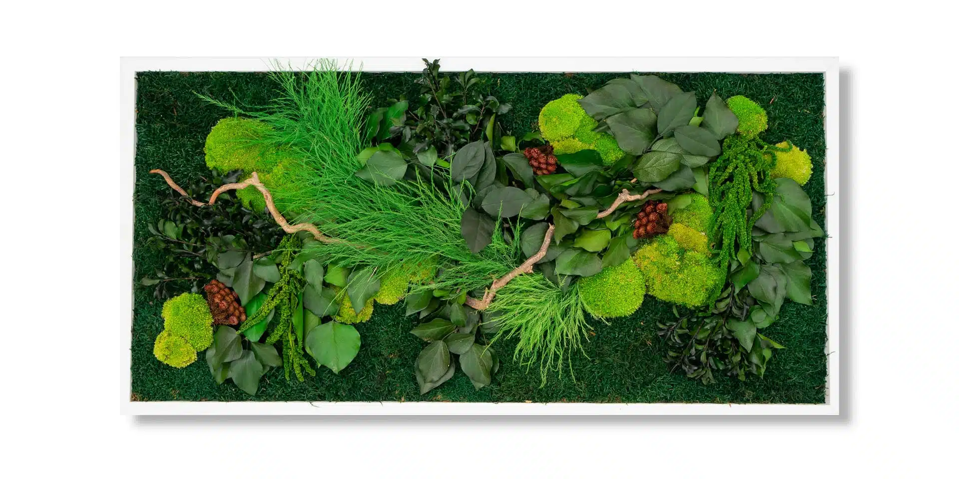 Designed for executive offices and luxury hospitality. Traditional art is flat and acoustically reflective; our preserved greenery pictures combine 3D volumes with high sound-absorbing power to reduce reverberation and cognitive fatigue, without requiring water or light.