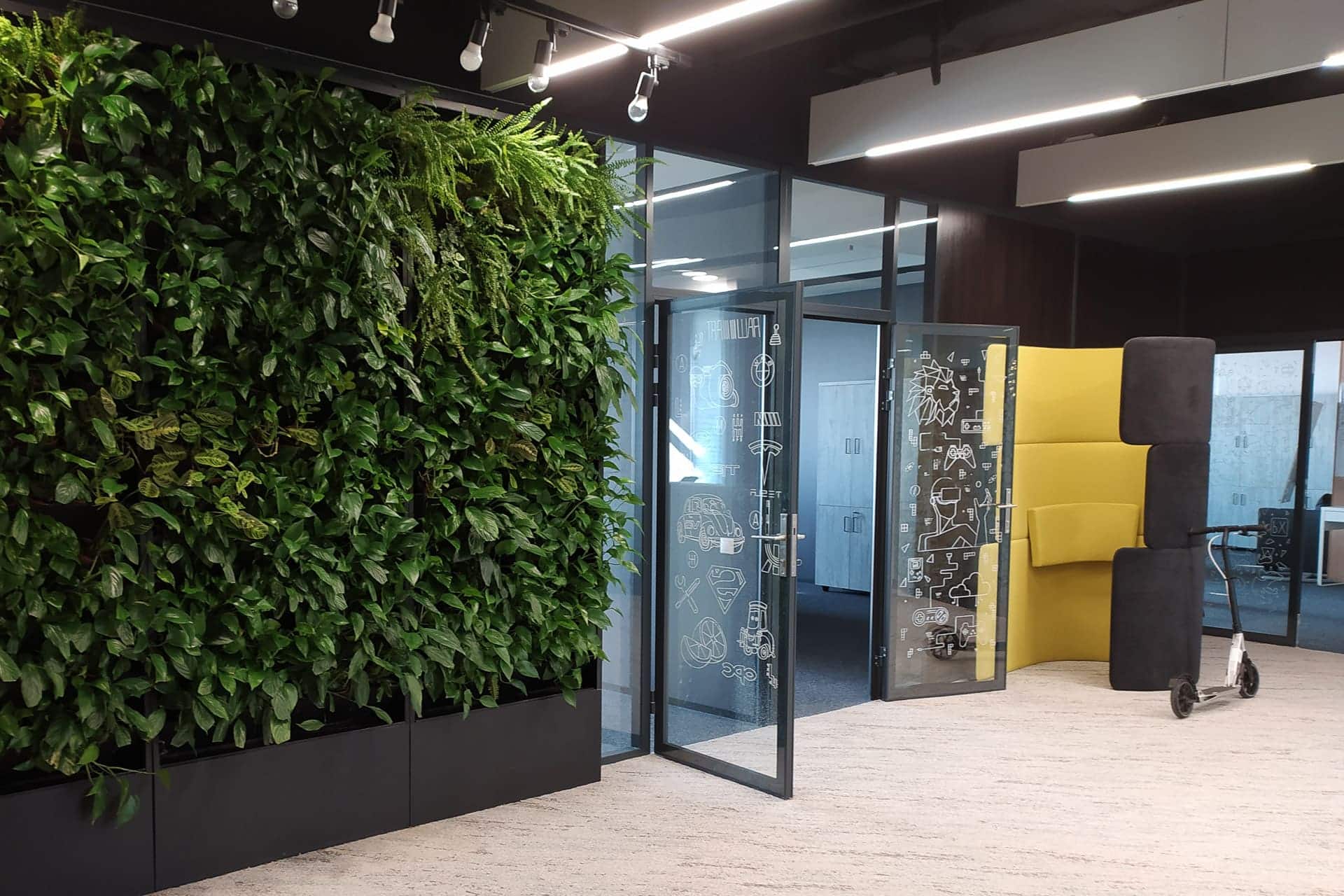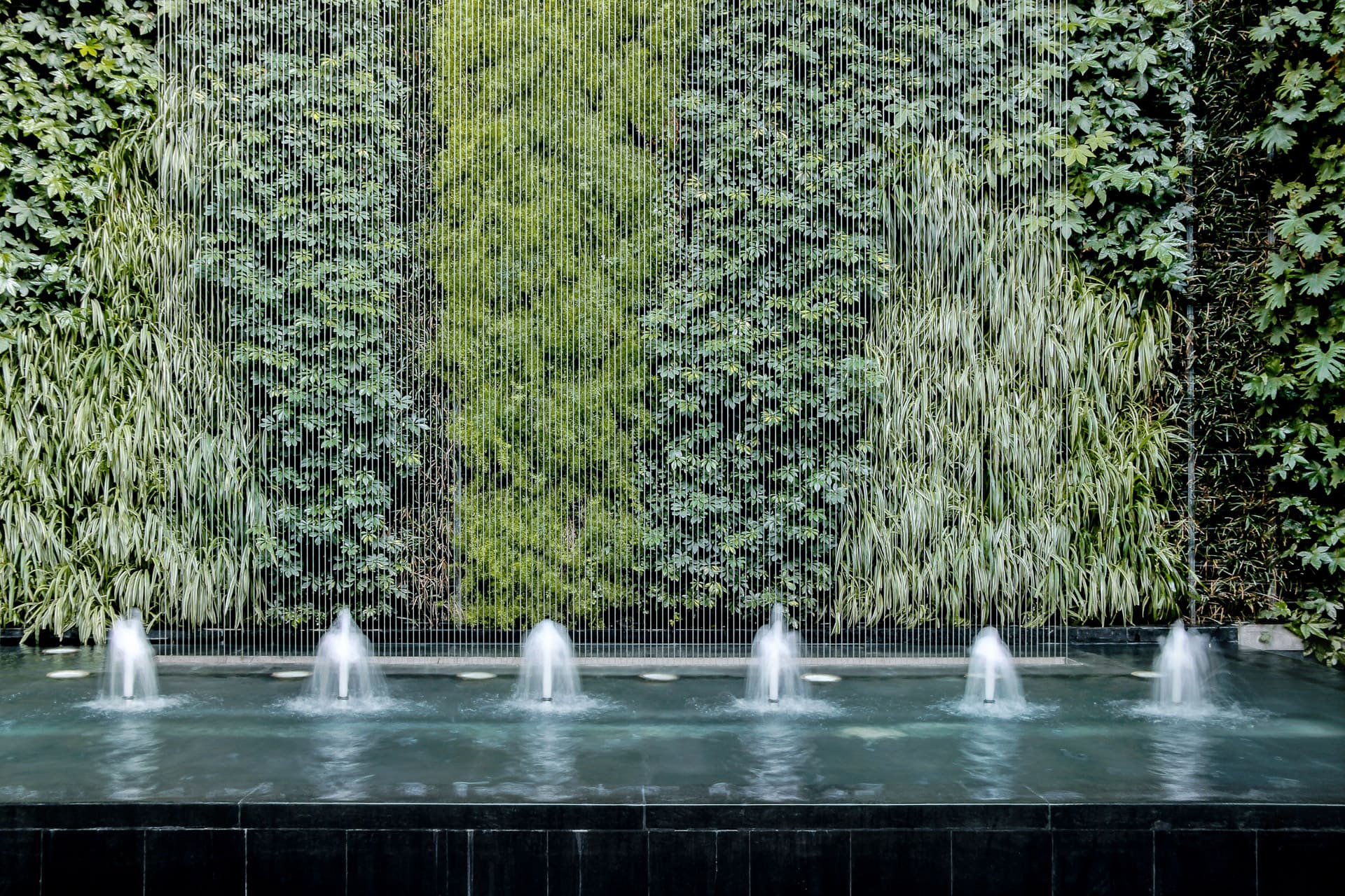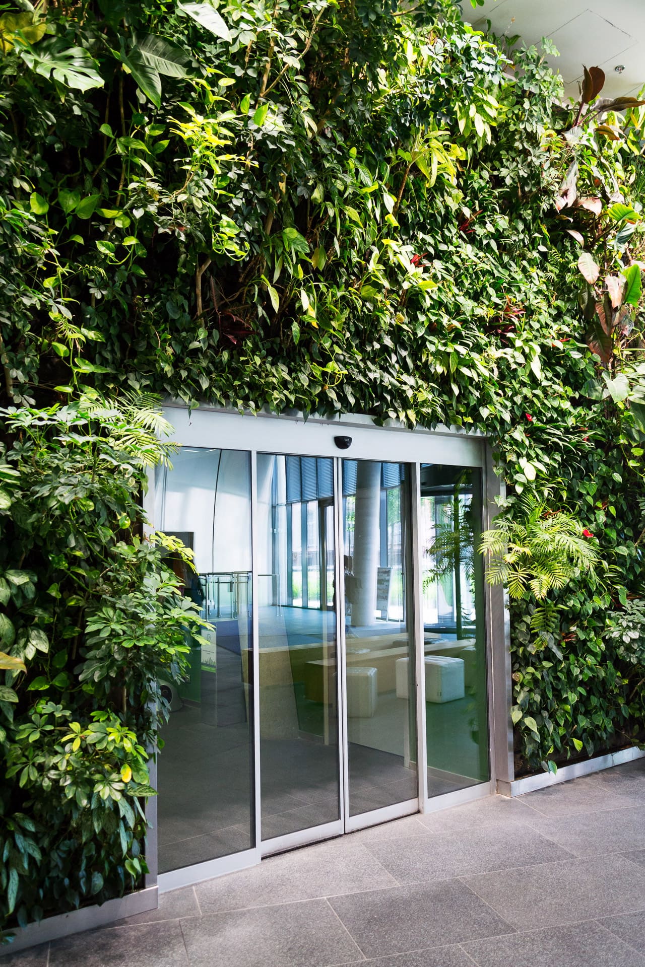 Ingegnerizziamo sistemi vegetali per il retail di lusso, l'hôtellerie e gli headquarter aziendali. Impatto monumentale unito a una gestione idrica automatizzata.